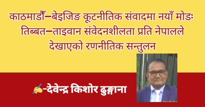 काठमाडौँ–बेइजिङ सम्बन्धमा देखिएको पछिल्लो संवादले नेपाललाई फेरि एकपटक दक्षिण एसियाली भू–राजनीतिक चेसबोर्डको केन्द्रमा ल्याएको छ। चीन , नेपाल र भारत बीचको त्रिकोणीय सन्तुलनमा तिब्बत र ताइवानजस्ता संवेदनशील विषयहरूले थप जटिलता थपेका छन्।