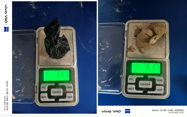 जिल्ला प्रहरी कार्यालय झापाबाट सादा पोसाकमा खटिएको टोली र वडा प्रहरी कार्यालय भद्रपुरको संयुक्त टोलीले शंका लागेर चेकजाँच गर्दा उनीहरूको छातीमा लुकाई छिपाई ल्याउँदै गरेको अवस्थामा खैरो हेरोइन जस्तो देखिने लिसिलो पदार्थ फेला पारेको थियो। उक्त बरामद लागूऔषध प्लाष्टिकसहित तौल गर्दा ६ ग्राम ४१० मिलिग्राम र प्लाष्टिक बाहेक ६ ग्राम १७० मिलिग्राम रहेको प्रहरीले जनाएको छ। पक्राउ परेका दुवै जनालाई आवश्यक अनुसन्धान तथा कानुनी कारबाहीका लागि जिल्ला प्रहरी कार्यालय झापामा राखिएको छ।