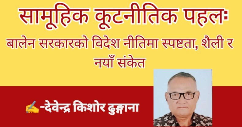 यसैगरी, विश्व राजनीति तीव्र रूपमा परिवर्तन भइरहेका बेला नेपालले आफ्नो कूटनीतिक रणनीति अझ लचिलो र परिणाममुखी बनाउनुपर्ने आवश्यकता छ। क्षेत्रीय शक्ति सन्तुलन, आर्थिक कूटनीति, जलवायु परिवर्तन र सुरक्षा जस्ता मुद्दामा स्पष्ट दृष्टिकोण र सक्रिय सहभागिता आवश्यक छ। बालेन सरकारको प्रारम्भिक पहलले यस्तो सोचको संकेत दिएको भए पनि यसको निरन्तरता र गहिराइ परीक्षणको विषय बन्नेछ।