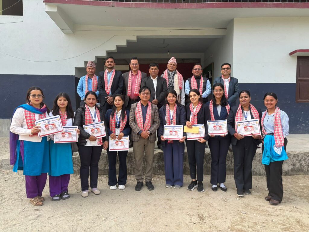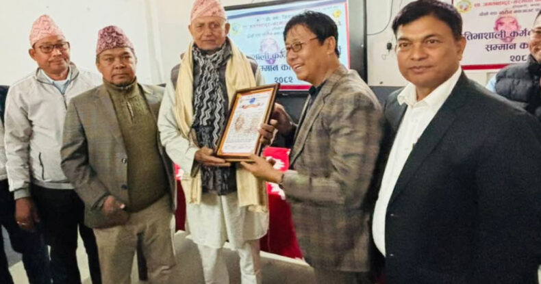 हल्दिवारी,२७ माघ । स्वर्गीय जगत व + नरमाया वन स्मृति प्रतिष्ठानले लक्ष्मी माध्यमिक विद्यालयका पूर्व प्रधानाध्यापक ओम मिश्रलाई सम्मान गरेको छ। प्रतिष्ठानले आज सिग्मा अंग्रेजी विद्यालयमा आयोजित कार्यक्रममा ४२ वर्षसम्म शिक्षण पेशामा योगदान पुर्‍याएका मिश्रलाई कदरपत्रसहित दोसल्ला ओडाएर सम्मान गरेको हो।