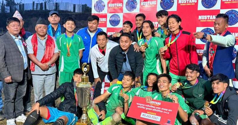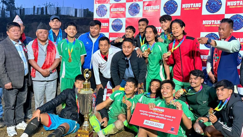 ​हल्दिबारी। पाँचथरको फाल्गुनन्द गाउँपालिकामा आयोजित फाल्गुनन्द गाउँपालिका अध्यक्ष कप आमन्त्रित फुटबल प्रतियोगिताको उपाधि हल्दीबारी गाउँपालिका २ को नवकिरण स्पोर्टिङ क्लबले हात पारेको छ। पाँचथरको नहमी डाँडामा सम्पन्न फाइनल खेलमा आयोजक तिजोक फुटबल क्लबलाई २–० को गोल अन्तरले स्तब्ध पार्दै नवकिरणले उपाधि चुमेको हो।