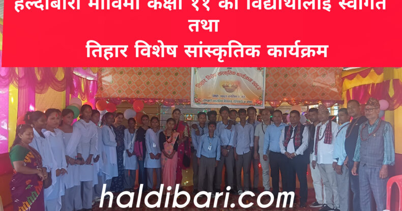 हल्दीबारी, झापा । हल्दीबारी माध्यमिक विद्यालयले कक्षा ११ मा अध्ययनरत विद्यार्थीहरूका लागि स्वागत तथा तिहार विशेष सांस्कृतिक कार्यक्रमको आयोजना गरेको छ।